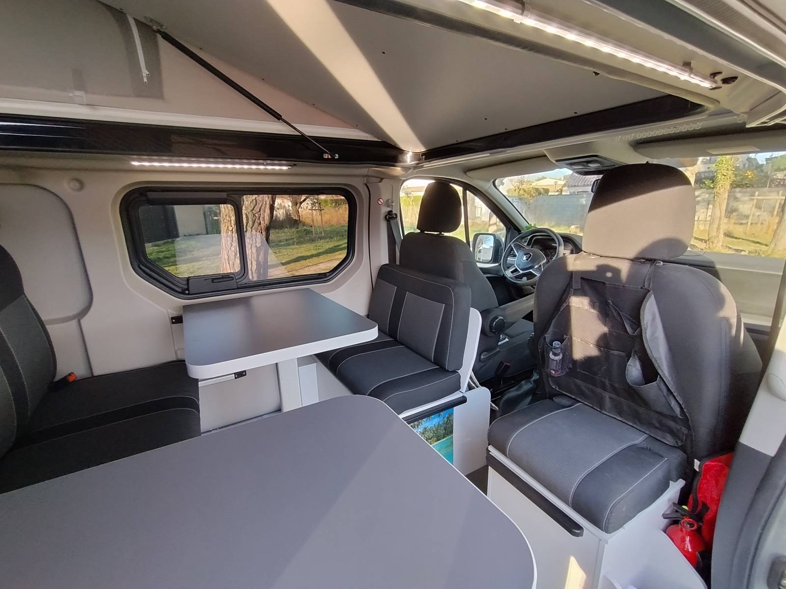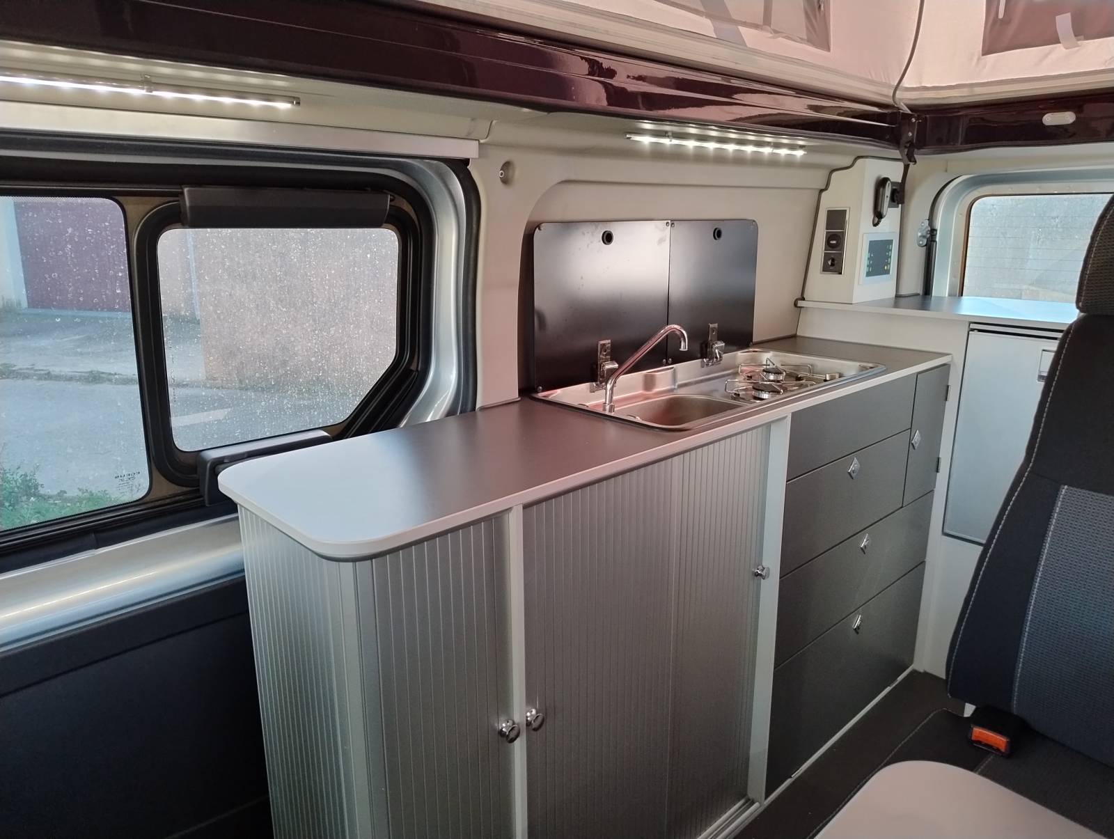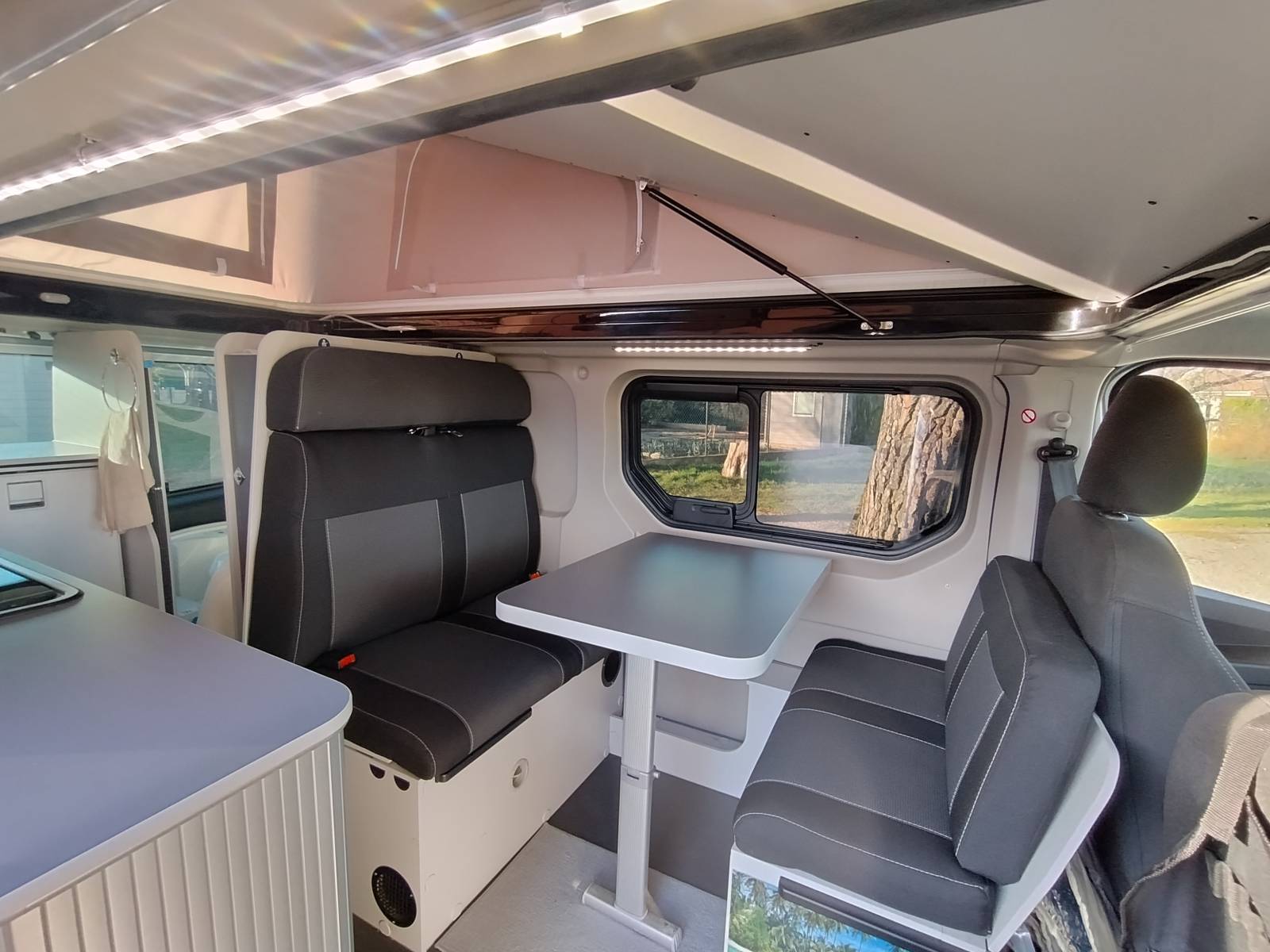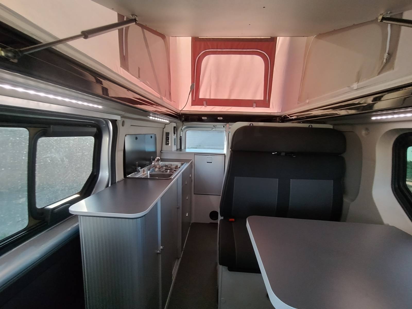 Petit van mais grand confort ! Ce modèle haut de gamme propose une implantation idéale pouvant accueillir jusqu’à 4 couchages grâce à son toit relevable électrique et son salon transformable en lit.