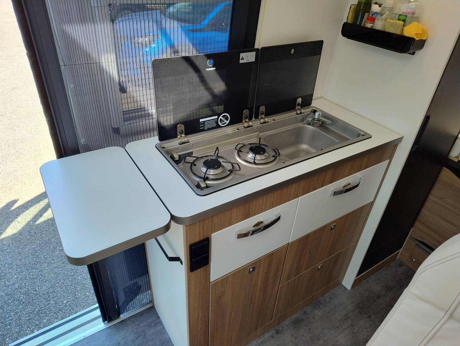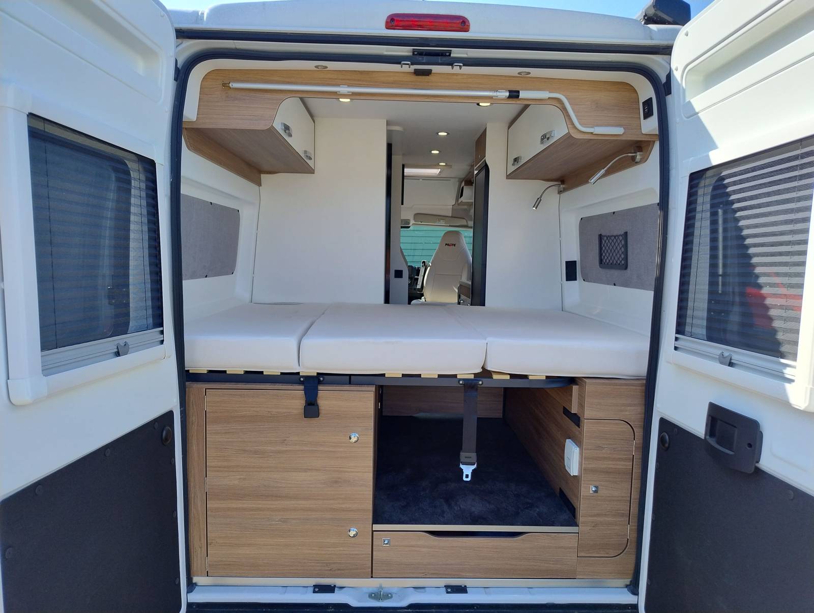 Pour votre confort ce modèle dispose de suspensions pneumatiques réglables et d’un superbe porte vélo pivotant parfaitement adapté pour vos vélos électriques. Un fourgon idéal pour les voyageurs en quête de liberté et de confort.