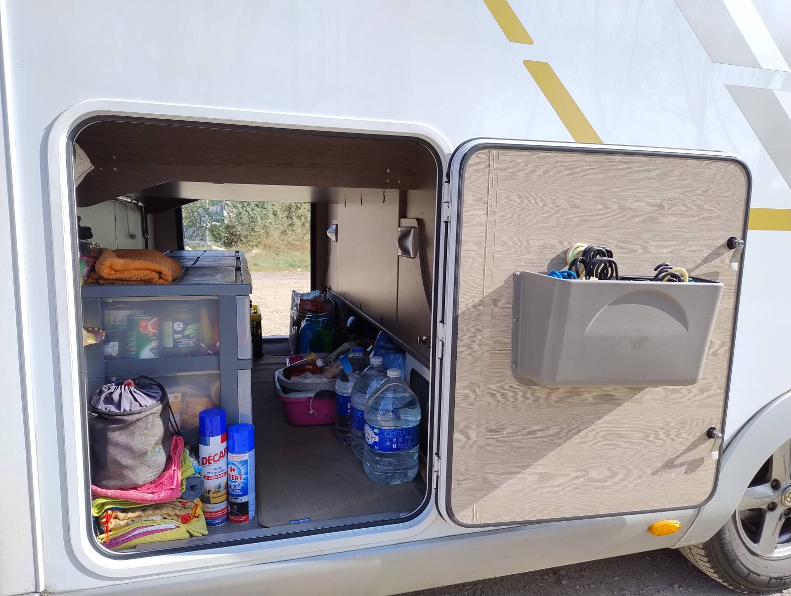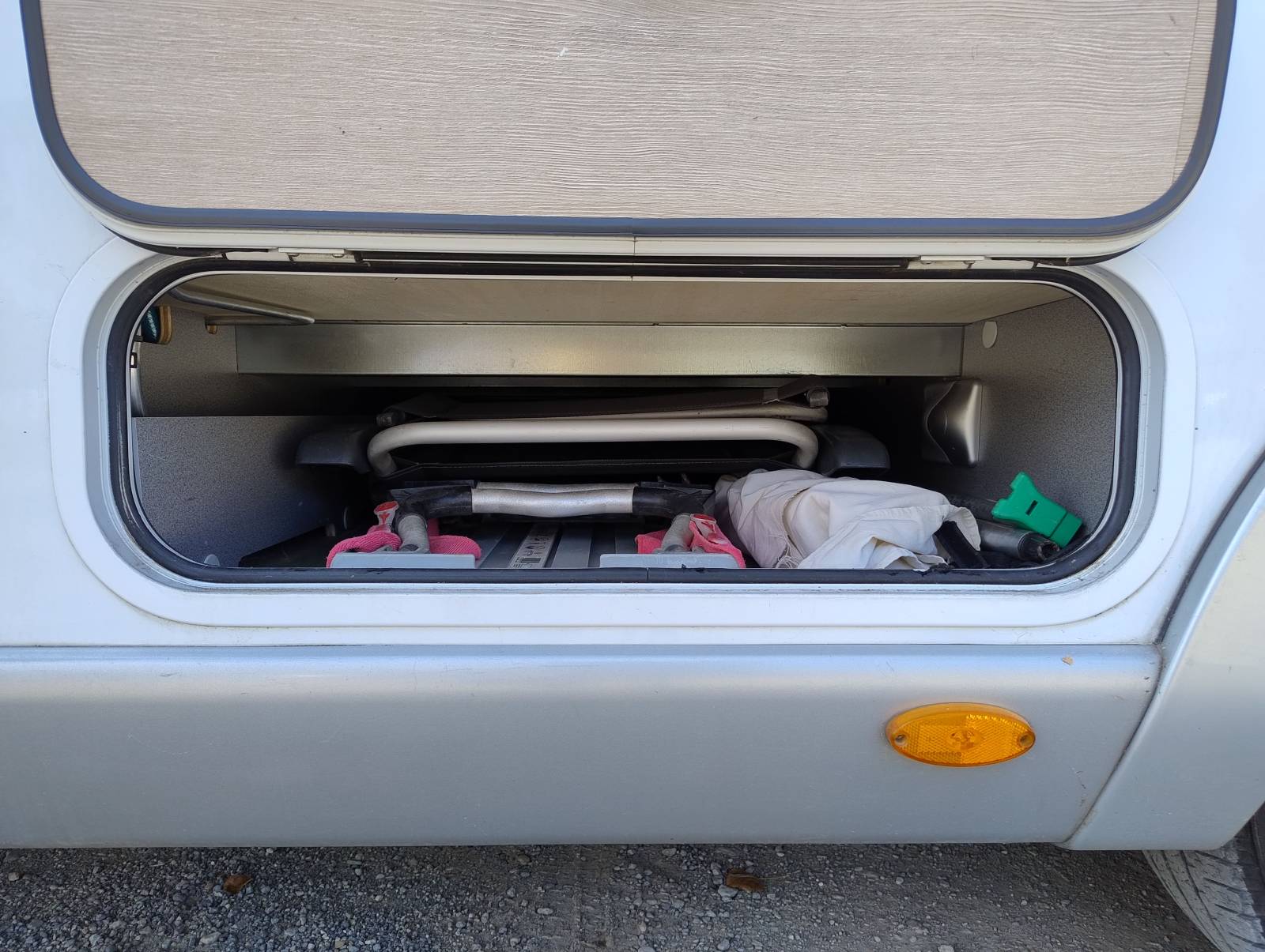 Une implantation idéale pour un couple ou une famille avec son lit central et son lit pavillon, cuisine toute équipée avec four à gaz et frigo congélateur de grande capacité. L’espace salle de bains se compose d’une douche séparée des WC avec double cloison de séparation entre la chambre et le salon.