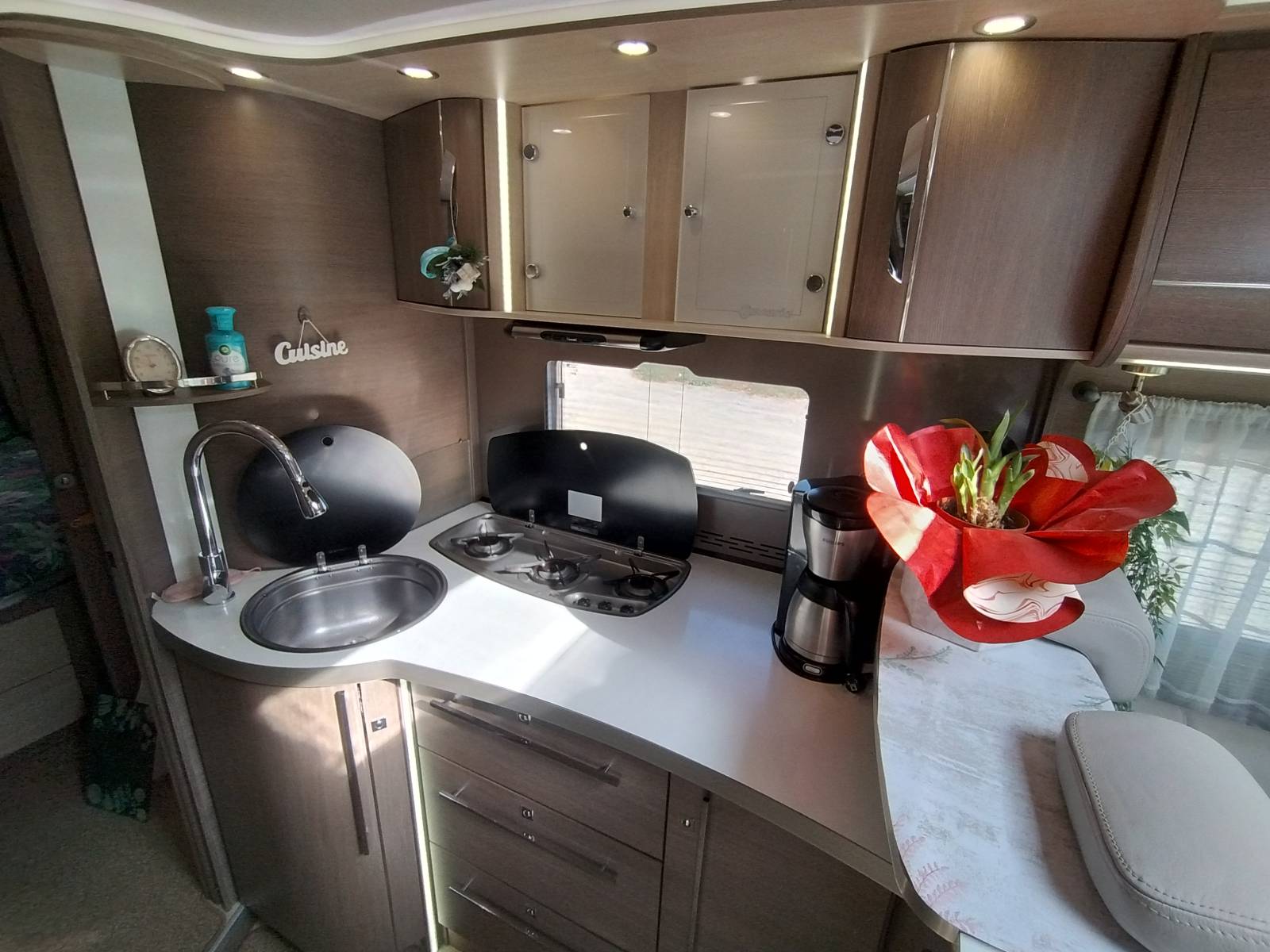 Côté conduite le confort est aussi au rendez-vous grâce au puissant bloc moteur de 180cv. Le tout reposant sur un châssis ALKO. Un modèle en très bon état, parfaitement entretenu prêt à partir pour de belles escapades tout confort ! Contrôle technique et test d’humidité en cours de réalisation.