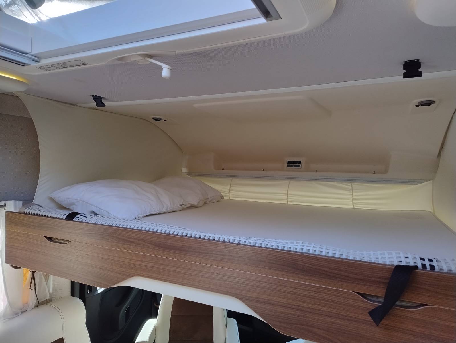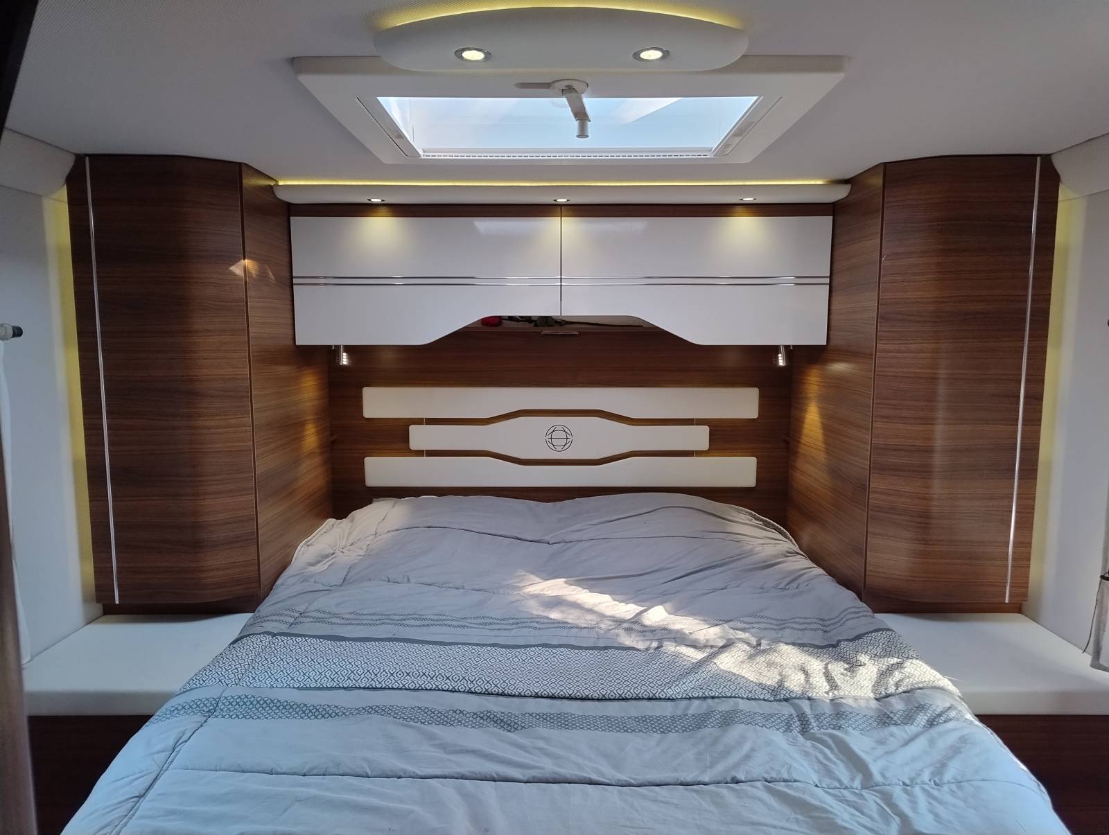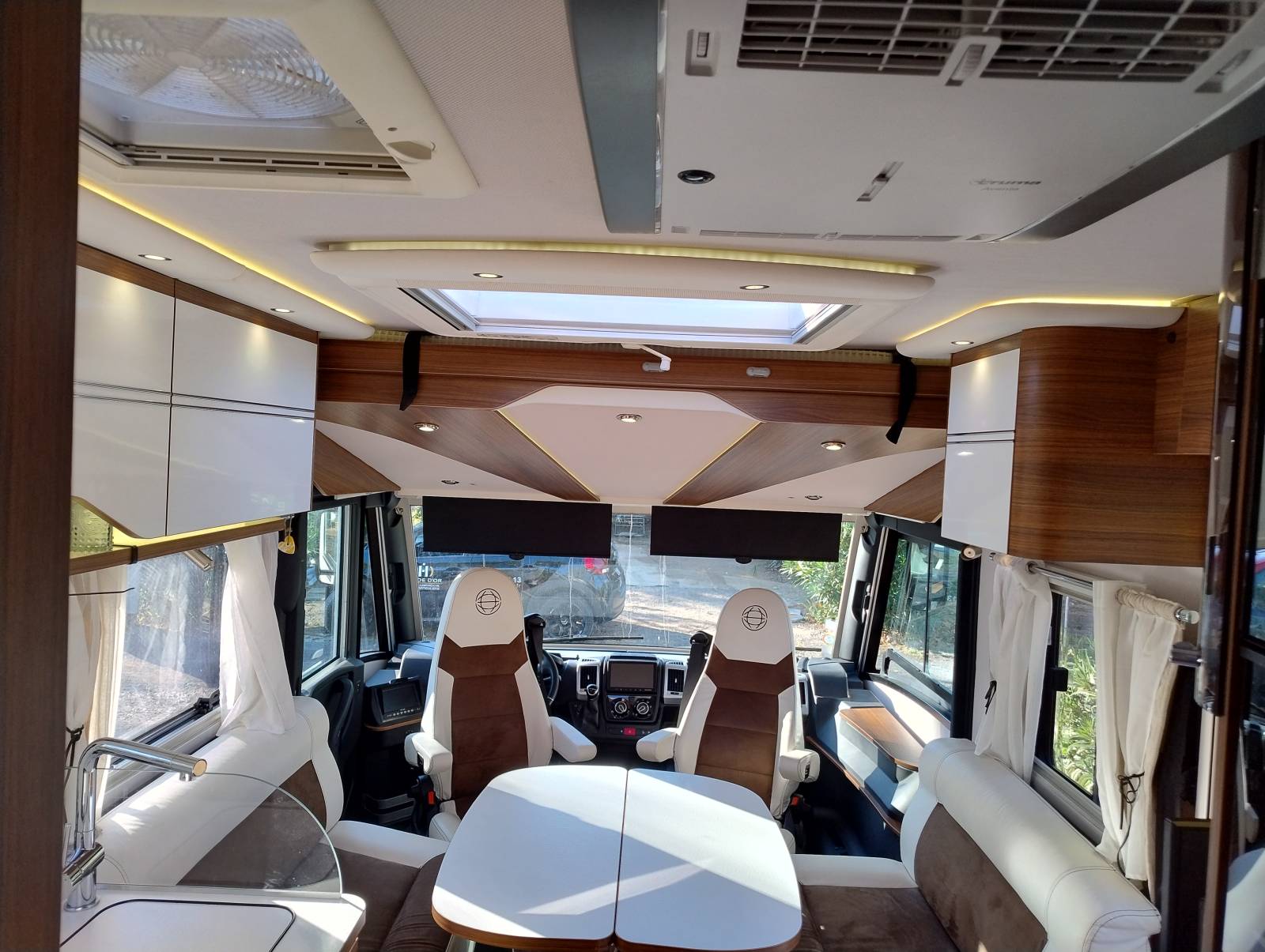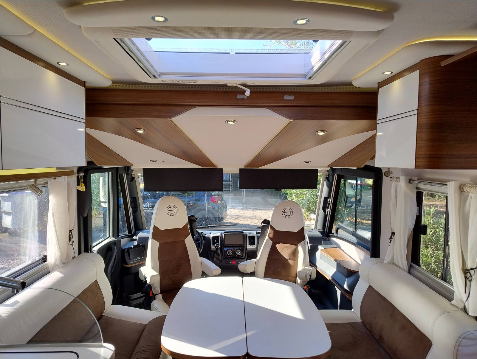Une implantation idéale pour un couple ou une famille avec son lit central + son lit pavillon, cuisine toute équipée, salon face à face spacieux, grande douche séparée des WC. Les équipements en nombre sur ce modèle vous apporteront tout le confort attendu pour vos escapades aux long court ; climatisation cellule, vérins hydrauliques, équipement GPL, batterie grande capacité avec son convertisseur, …
