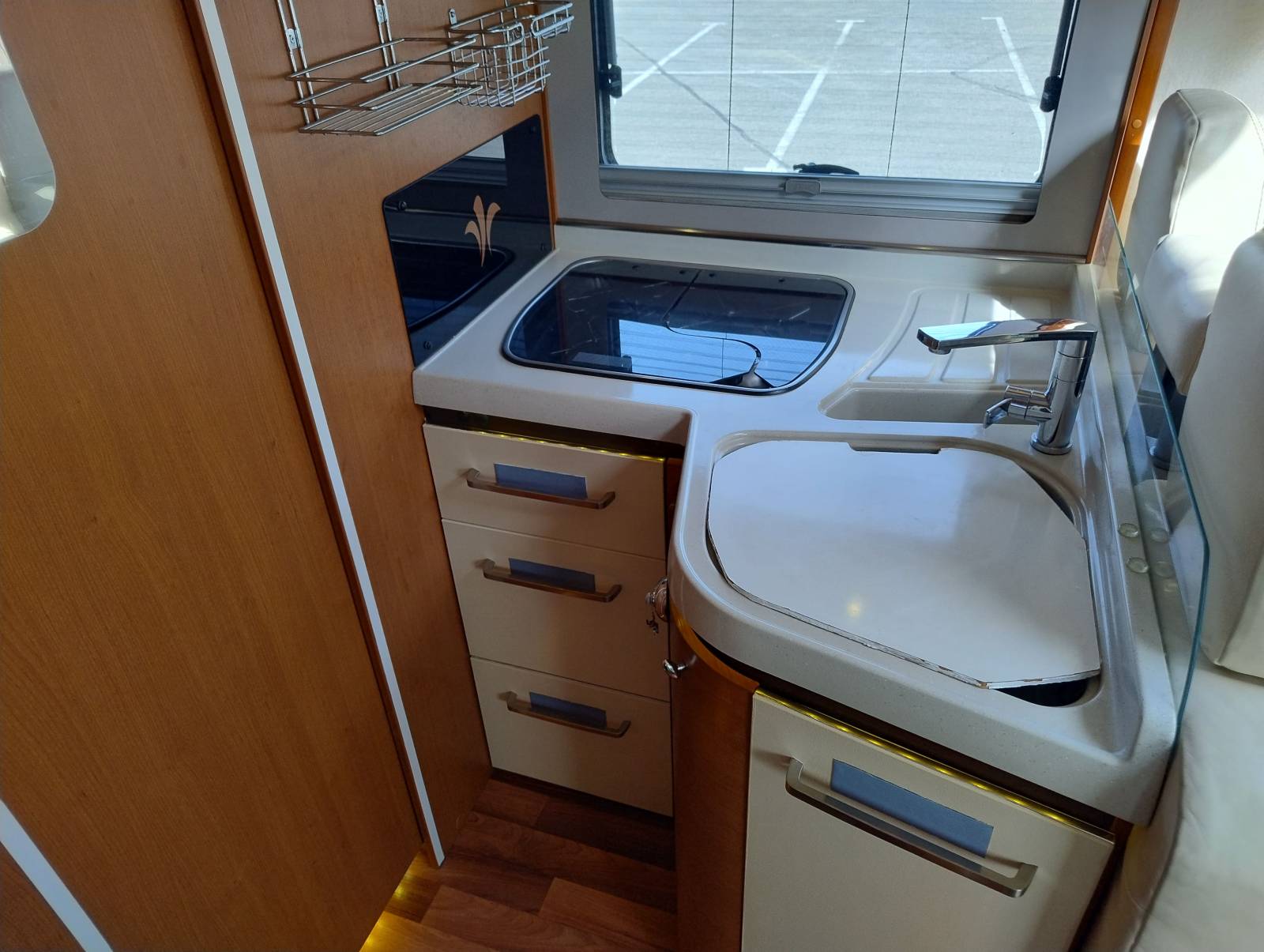 À l’intérieur, tout a été pensé pour offrir une véritable expérience haut de gamme : vaste salon panoramique lumineux, cuisine entièrement équipée, salle d’eau spacieuse et superbe chambre arrière avec lit central. Les matériaux nobles, les finitions soignées et les nombreux rangements renforcent cette sensation de luxe et de bien-être à bord.